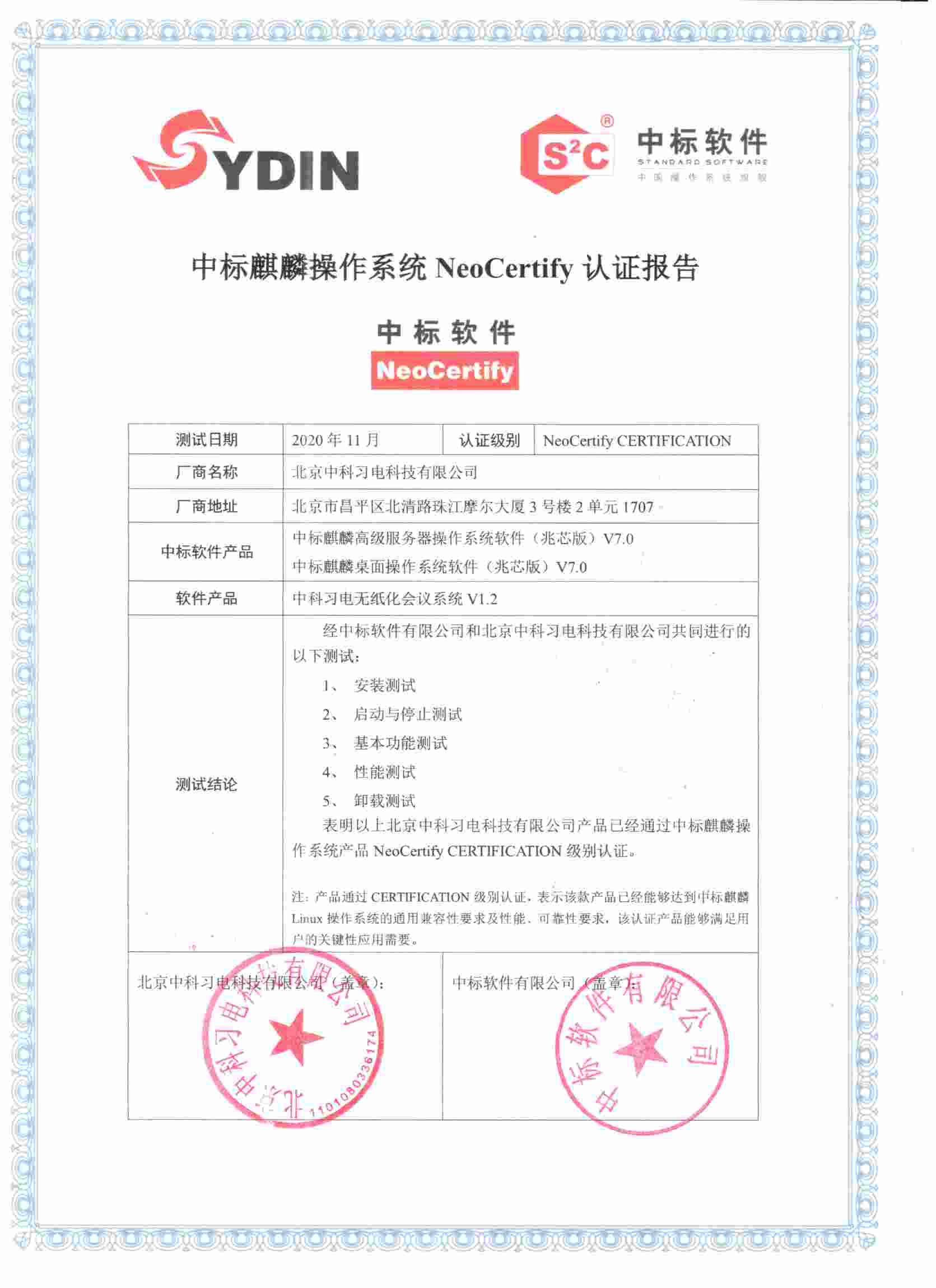 习电科技在2019年成功推出基于天津飞腾、中标麒麟的纯国产无纸化会议系统,配合集成商客户服务过中共中央网信办会议室、华为技术高密会议室的无纸化建设。目前兼容飞腾、兆芯、龙芯处理器,适配麒麟、UOS、中科方达、鸿蒙操作系统,同时具备跨系统之间的互联互通,是国产无纸化会议系统的领导者。