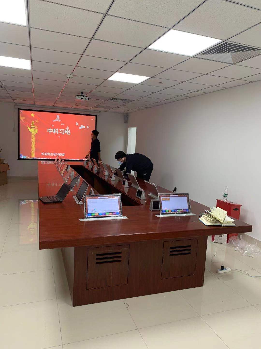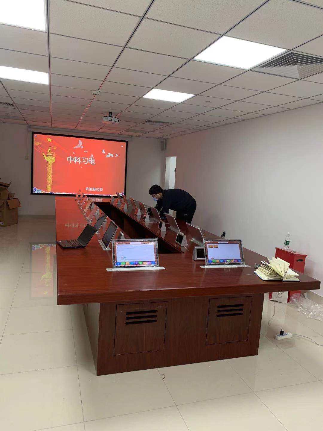 早在2013年全国两会就推行了“无纸化”办公,而北京南站也在2020年响应国家号召,对会议室进行了一番革新。北京中科习电科技有限公司根据甲方的需求,为办公会议室专属定制了一套方案:16台15.6寸无纸化超薄触控液晶升降一体机、16套Y5桌牌、多媒体会议控制主机、全数字会议拓展主机、不可或缺的16套SYDIN无纸化会议客户端软件以及SYDIN无纸化后台管理系统软件,同时还配备了大屏控制器、高清数字编码器、数字会议主机、主席/代表话筒单元