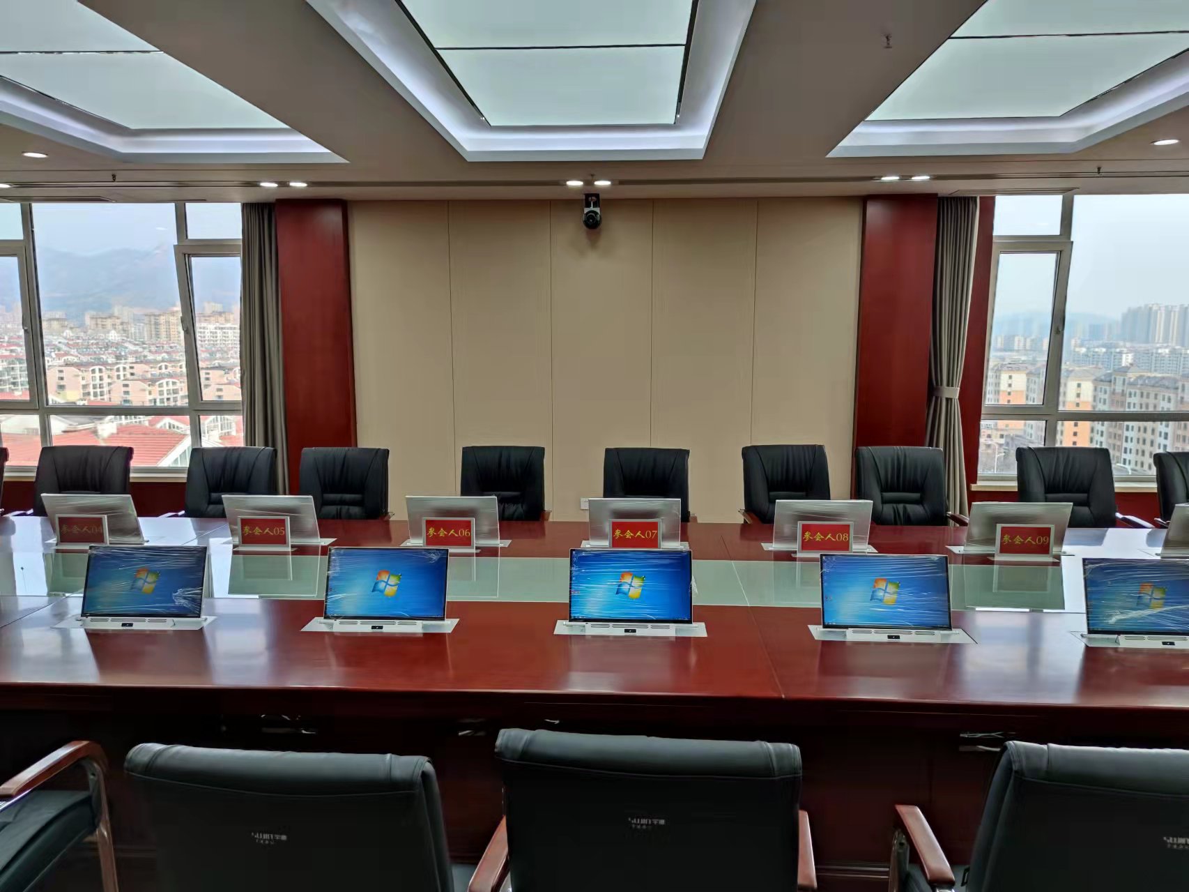 早在2013年全国两会就推行了“无纸化”办公,而李沧法院也在2021年响应国家号召,对党委会议室进行了一番革新。北京中科习电科技有限公司根据甲方的需求,为办公会议室专属定制了一套方案:20台17.3寸无纸化超薄触控液晶升降一体机(带阵列话筒)、20套升降桌牌、多媒体会议控制主机、全数字会议拓展主机、不可或缺的20套SYDIN无纸化会议客户端软件以及SYDIN无纸化后台管理系统软件,同时还配备了大屏控制器、高清数字编码器、数字会议主机、主席/代表话筒单元