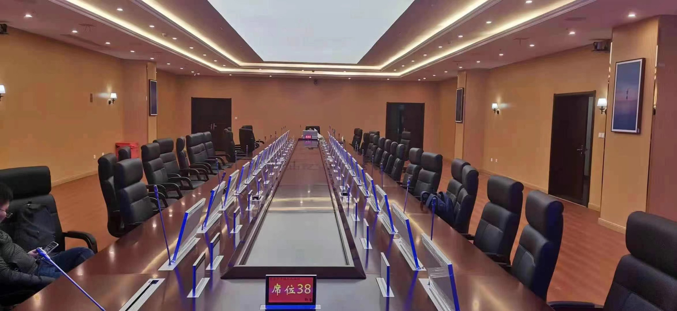 早在2013年全国两会就推行了“无纸化”办公,而青岛市中级人民法院也在2020年响应国家号召,对庭审会议室进行了一番革新。北京中科习电科技有限公司根据甲方的需求,为会议室专属定制了一套方案:36台24寸无纸化超薄触控液晶升降一体机(带升降话筒)、36套升降桌牌、多媒体会议控制主机、全数字会议拓展主机、不可或缺的20套SYDIN无纸化会议客户端软件以及SYDIN无纸化后台管理系统软件,同时还配备了大屏控制器、高清数字编码器、数字会议主机、主席/代表话筒单元