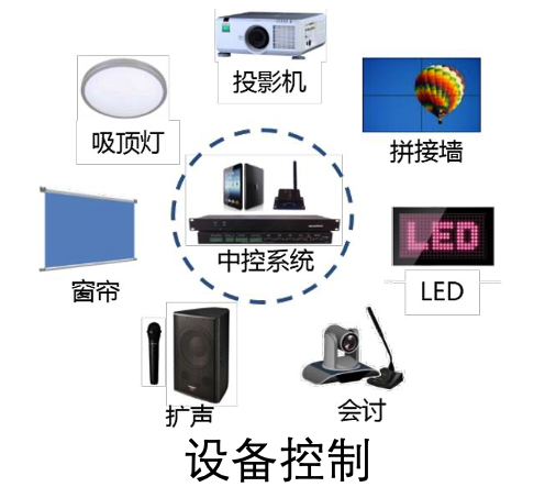 使用会议服务器与中控设备对接,当会议开始时可告知中控设备,中控设备可将如升降屏、话筒、时序电源、伸缩投影吊架、窗帘、灯光等进行预置位开启,反之,会议结束后也可通知中控进行相应设备关闭