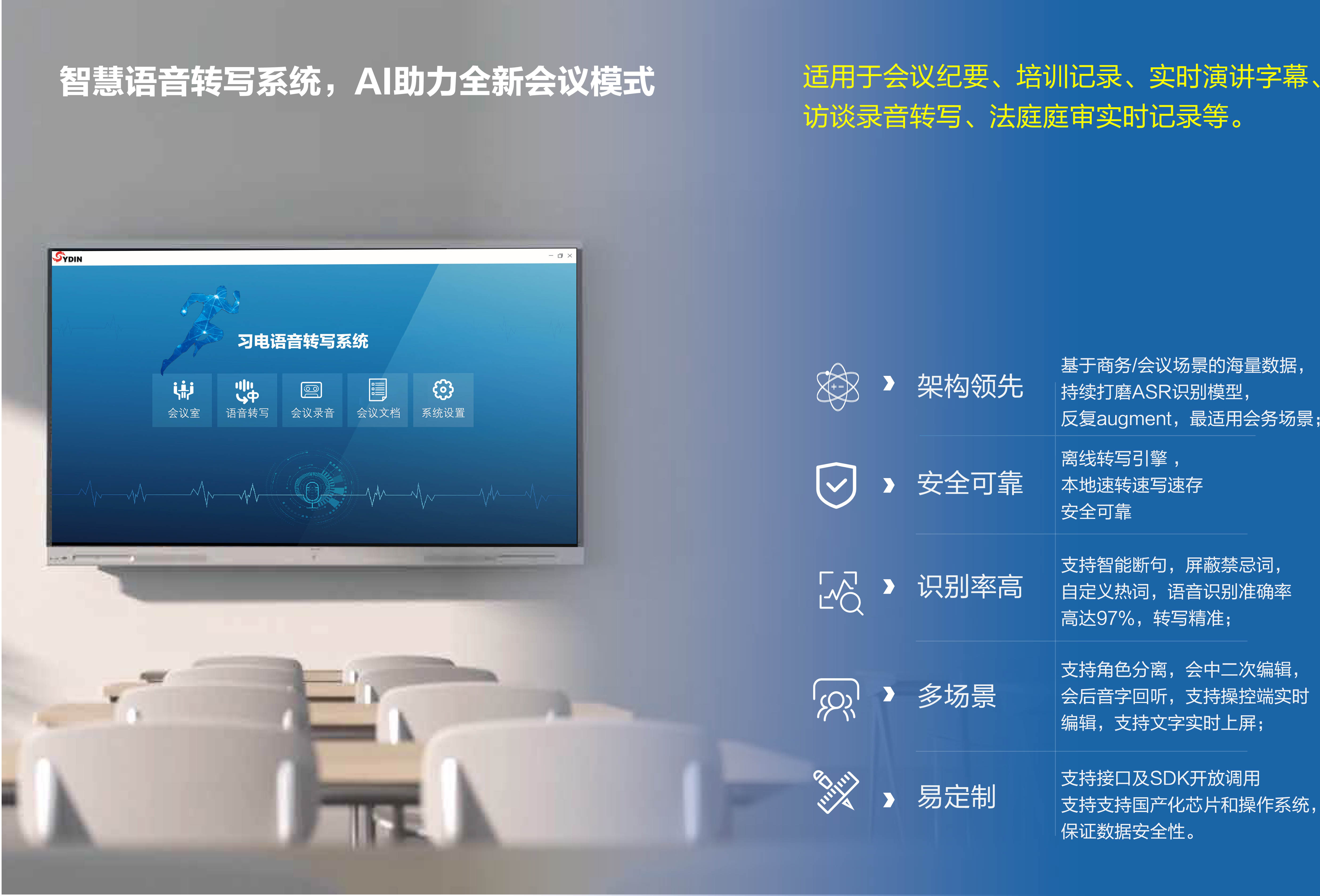 习电智慧会议语音识别平台,是通过语音识别、机器翻译及自然语言处理等技术,实现语音转写、内容投屏、实时翻译、纪要整理、音频文本下载等功能,智慧语音系统内置的声学模型以汉语拼音声韵母为基本识别单元进行声学建模,兼顾了模型的颗粒度及可扩展性。为了提高模型训练的鲁棒性,采用数万小时的通用语音数据,并进行了data augment,主要包括speed/volumn/RIR/pitch/noise perturbation 等手段,把训练数据量又扩大了20 倍